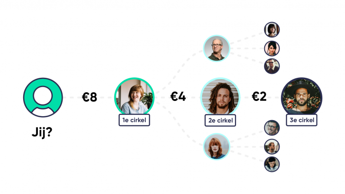 CommonEasy bestaat uit een groot netwerk, opgedeeld in jouw eigen directe netwerk, je eerste cirkel die je persoonlijk kent en zelf uitkiest. Die eerste cirkel wordt aangevuld door een indirect netwerk, zodat de kosten per zieke die je ondersteunt beperkt en kleiner worden. De ondernemers die via je directe netwerk, de eerste cirkel, aan je verbonden zijn. De vrienden van je vrienden eigenlijk. Zo wordt het netwerk groot genoeg om elkaar goed te kunnen helpen met lage bijdragen per persoon!