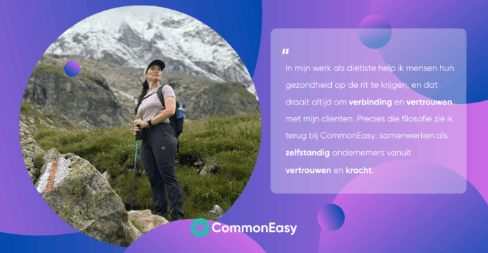 “Het idee van gedeelde smart — dat we als ondernemers echt voor elkaar klaarstaan — sprak me meteen aan. Een aantal vriendinnen zat al bij Common Easy, en het concept past gewoon bij mij. Ik vind het mooi om elkaar op deze manier te kunnen ondersteunen.”