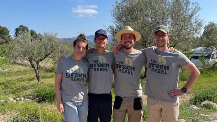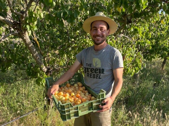 Ik ben Carlo Steensma, oprichter van The Green Rebel. Wij proberen de voedselindustrie van binnenuit te vergroenen, door regeneratief groente, fruit, amandelen & olijf olie te produceren. Wij wonen 2 uur ten zuiden van Barcelona, in Spanje. Landbouw is de meest destructieve industrie voor onze leefomgeving & gezondheid; ontbossing, verwoestijning, vervuiling van onze wateren, en een hoop zooi & bestrijdingsmiddelen liggen er op ons bord. Wij boeren met principes geleerd van inheemse volkeren, door onder andere de bodem te verbeteren, terwijl we er onze boterham mee kunnen verdienen.