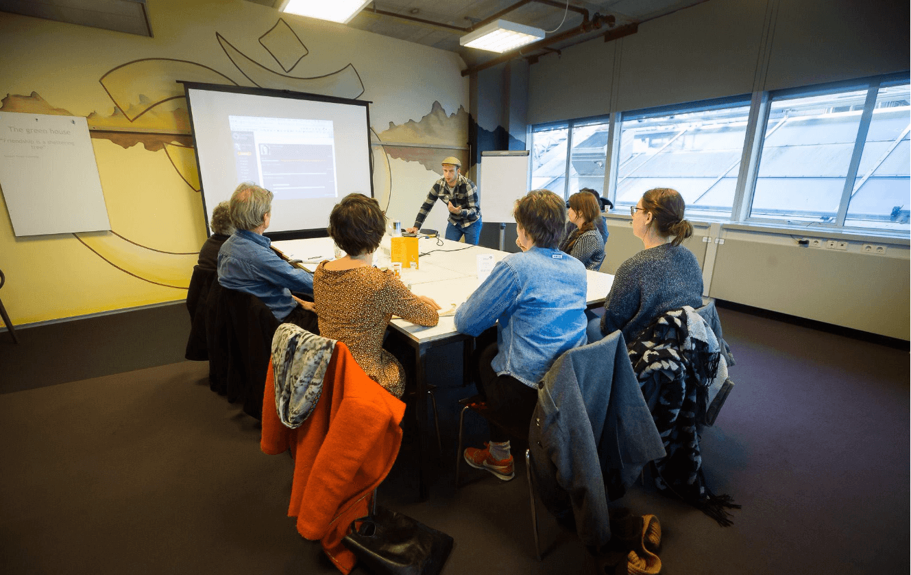 Oprichter van CommonEasy Jip neemt ons tijdens de workshop vol idealisme en gedrevenheid mee in zijn ‘oplossing’ om buiten de grote, anonieme en dure verzekeringswereld te zorgen voor onze zekerheid als zzp’ers gebaseerd op solidariteit. Na afloop van de workshop worden er door het publiek aan Jip vragen gesteld.