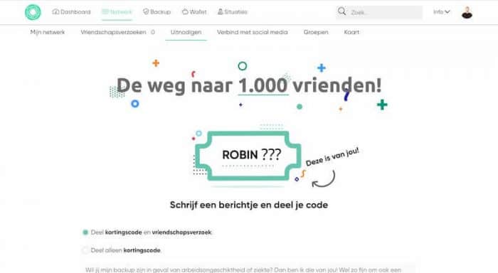 Met de optie Deel kortingscode en vriendschapsverzoek stuur je dus de kortingscode én nodig je iemand uit om direct in jouw eerste cirkel te komen.