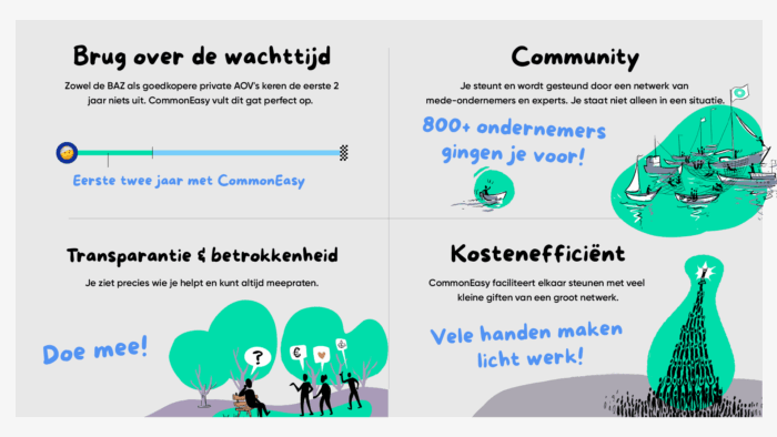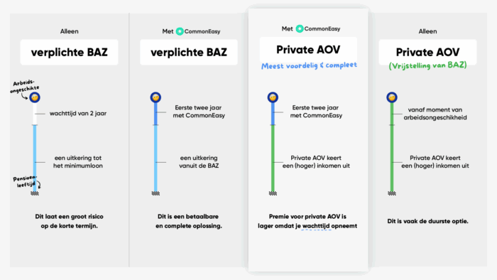 - CommonEasy vangt je op tijdens de eerste 2 jaar (de wachttijd van je private AOV en de BAZ).